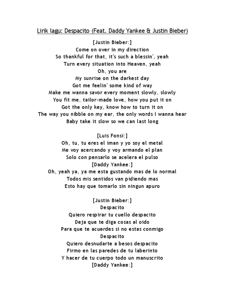 Lirik Lagu Despacito Dan Terjemahannya Yang Dinyanyikan Justin Bieber